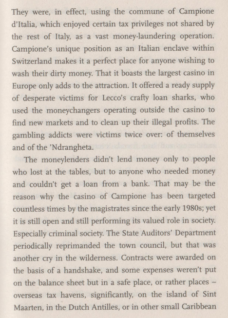 Italian style meals with them once. There are the legit tax scams in these places and the criminal money like raiding treasuries and drugs. It would not