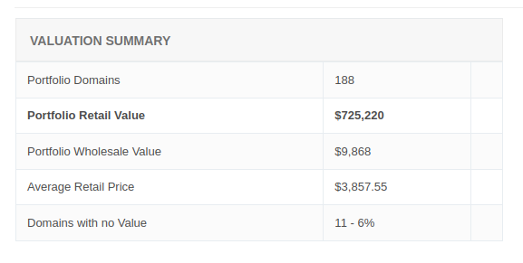 The domain portfolio above cost me about $10,000 as can be seen and I am looking for funding to buy more. Do please just answer below if interested. Valuation bought from Estibot approved by IRS for domain valuation purposes.