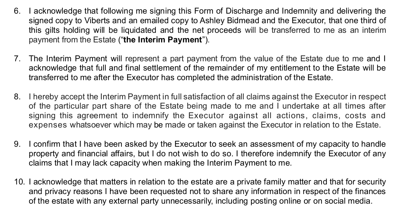 Above are 5 clauses of the latest protection/security offer I cannot refuse from Viberts and what happens if I fail to sign... basically the same sort of idea as the 1994 rights disclaimer Scholefield forced me to sign